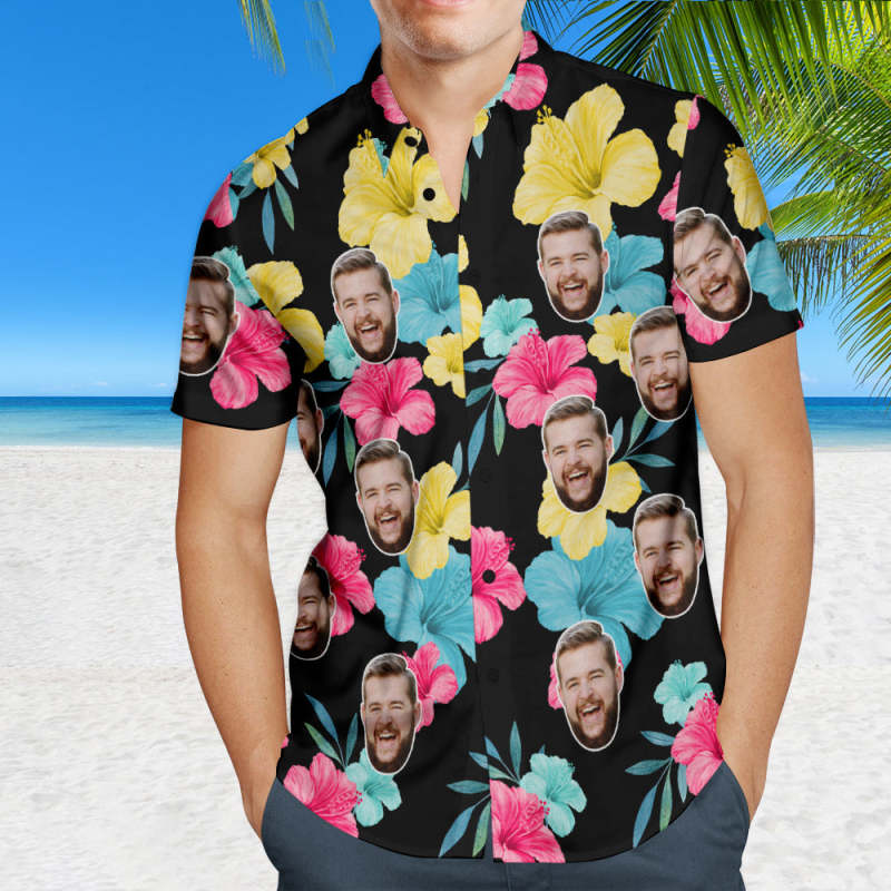 Custom Face Hawaiian Shirt Personalized Photo Summer Shirts for Men - Multicolored Flowers Custom Face Hawaiian Shirt Personalized Photo Summer Shirts for Men - Multicolored Flowers