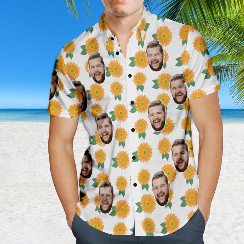 Custom Face Hawaiian Shirt Personalized Photo Summer Shirts for Men - Sunflowers Custom Face Hawaiian Shirt Personalized Photo Summer Shirts for Men - Sunflowers