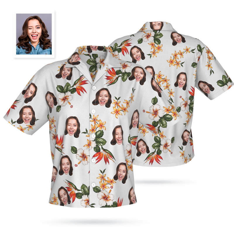 Custom Face Hawaiian Shirt Personalized Photo Summer Shirts for Women - Flowers