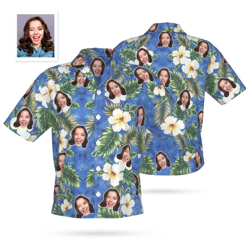 Custom Face Hawaiian Shirt Personalized Photo Summer Shirts for Women - Hibiscus