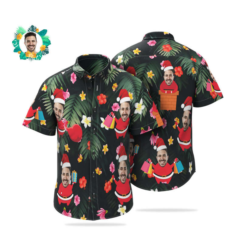 Custom Face Hawaiian Shirts Personalized Photo Santa Claus Christmas Shirt For Men Custom Face Hawaiian Shirts Personalized Photo Santa Claus Christmas Shirt For Men
