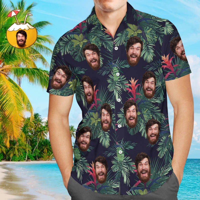 Custom Face Hawaiian Style Bromelia Long Dress And Shirt Couple Outfit