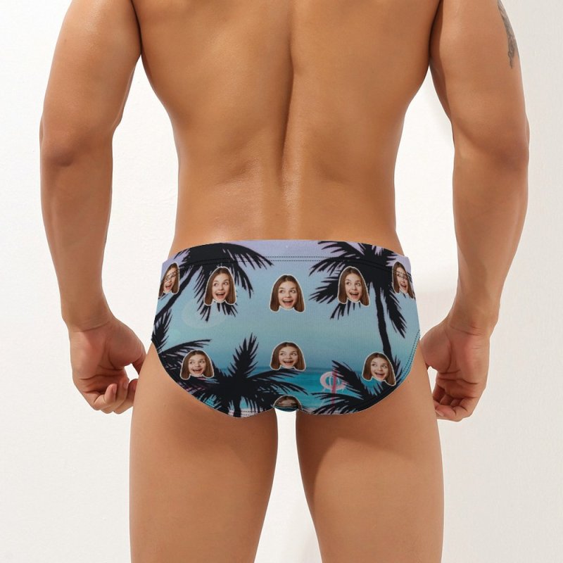 Custom Face Hawaiian Style Men's Swimming Trunks Personalized Palm Triangle Swim Briefs