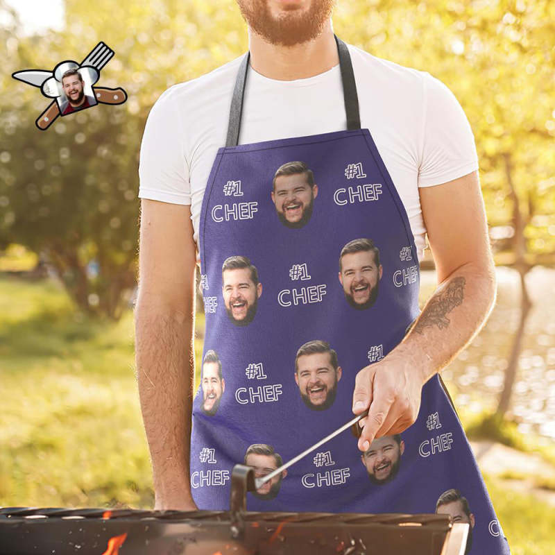 Custom Face Kitchen Apron Gifts for Dad, Mom - #1 CHEF