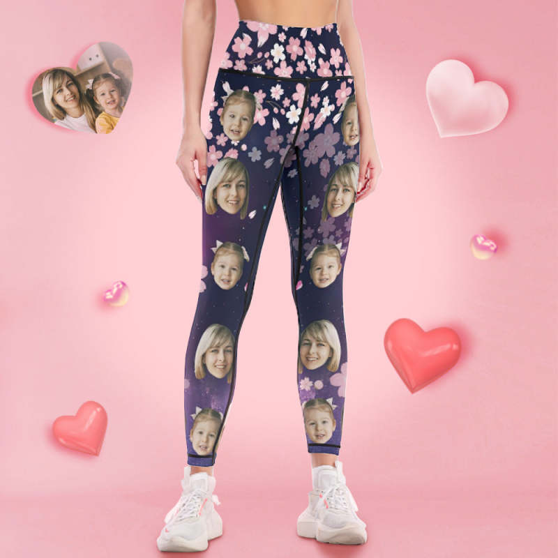 Custom Face Leggings and Tank Top Yoga Clothing Suit Mother's Day Gift - Pink Flowers