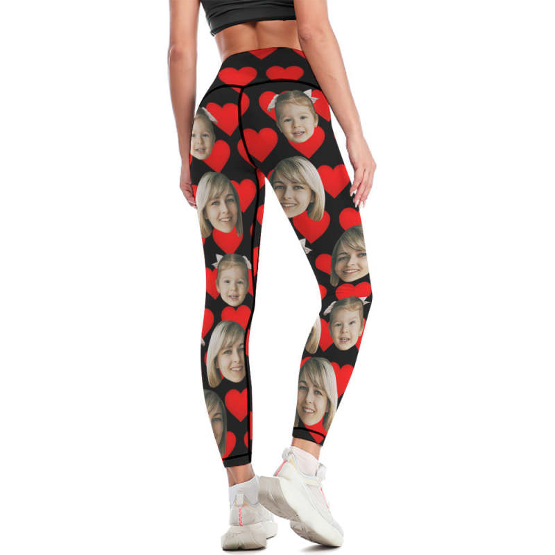 Custom Face Leggings and Tank Top Yoga Clothing Suit Mother's Day Gift - Red Heart