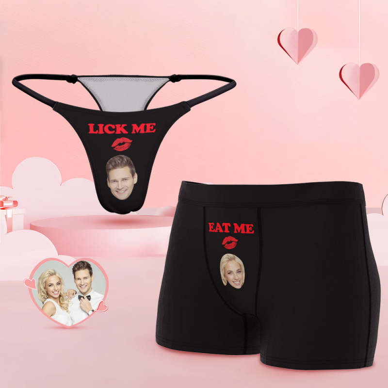 Custom Face Lick Me Couple Underwear Personalized Underwear Valentine's Day Gift