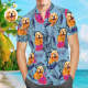 Custom Face Men Hawaiian Shirts Personalized Cute Dog Face for Pet Lover - Smoke Blue