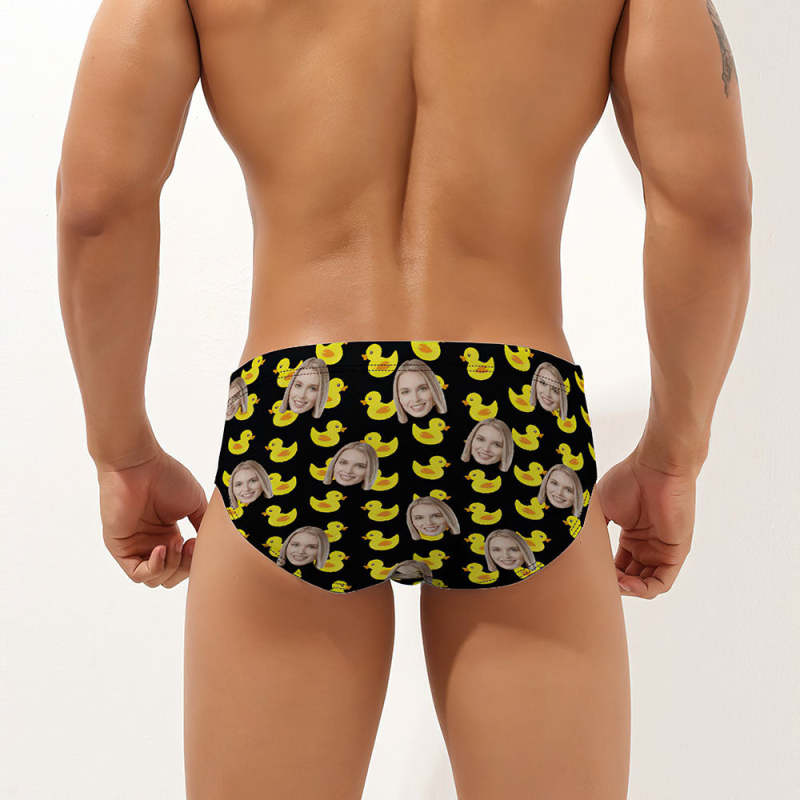Custom Face Men's Swimming Trunks Personalized Duck Print Swim Briefs