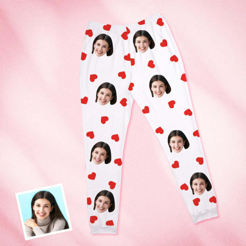 Custom Face Pajamas Personalized Round Neck Love Red Heart Pajamas For Women Valentine's Day Gift
