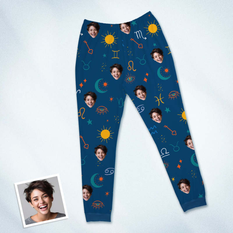 Custom Face Pajamas Sleepwear Personalized Round Neck Blue Pajamas Constellation Symbol For Women And Men