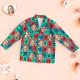 - Matching shirt with notched lapels; button front.