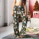 Custom Face Pants Ladie's Green Loose Wide-leg Pajama Pants Snowman Merry Christmas