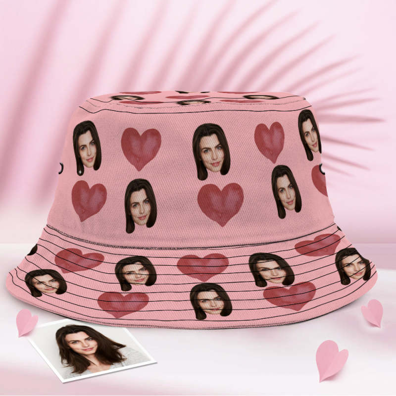 Custom Face Pink Bucket Hat Unisex Personalized Photo Summer Cap Hiking Beach Hats - Red Heart Custom Face Pink Bucket Hat Unisex Personalized Photo Summer Cap Hiking Beach Hats - Red Heart