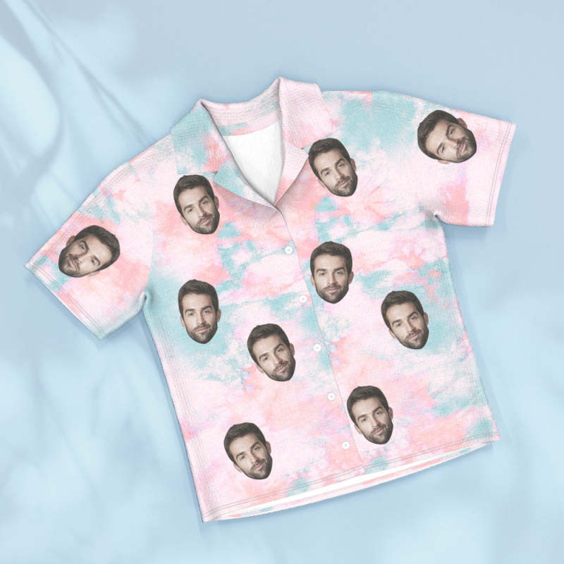Custom Face Pink Tie Dye Pajamas Personalized Photo Short Sleepwear Love Gifts For Lover