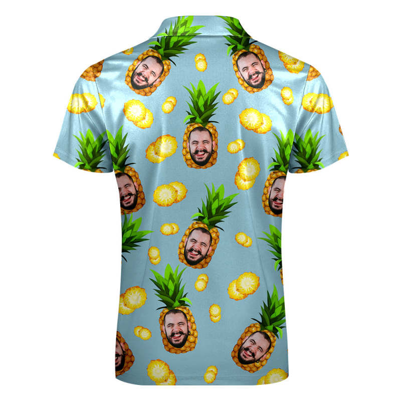 Custom Face Polo Shirt with Zipper Personalized Funny Pineapple Pattern Men's Polo Shirt