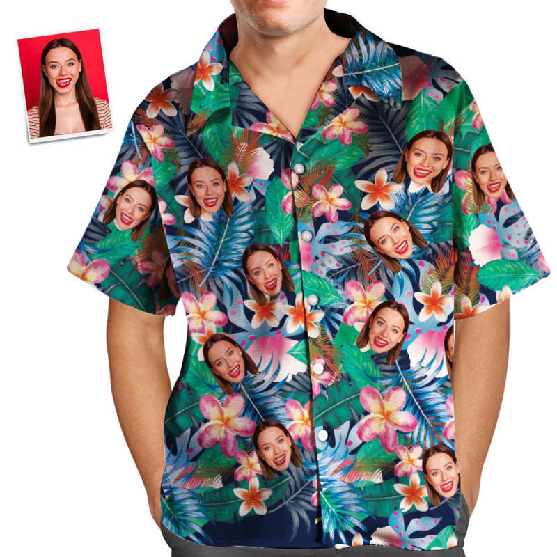 Custom Face Shirt Men's Hawaiian Shirt Personalized Photo Colorful Flowers Tshirts
