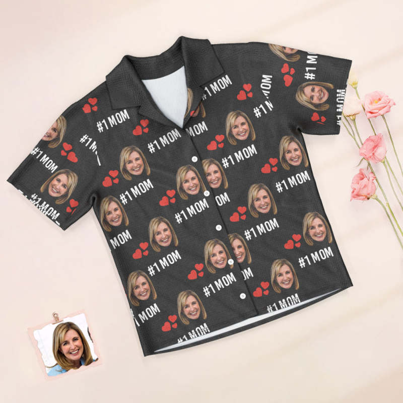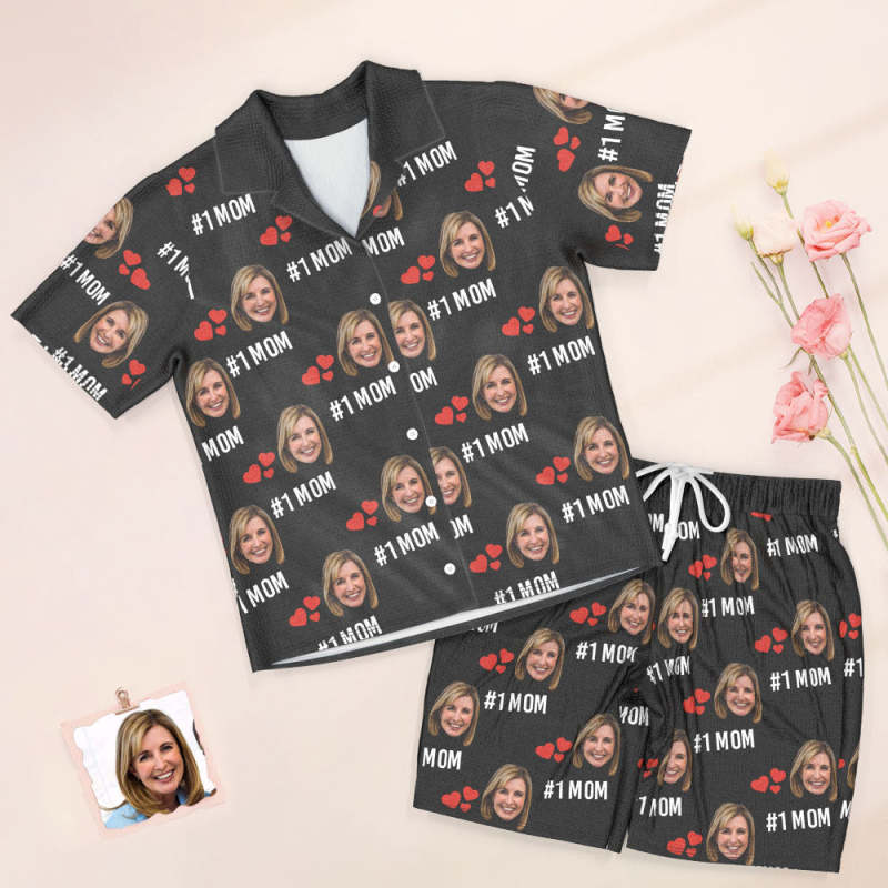 Custom Face Short Sleeved Pajamas Personalized Photo Love Sleepwear Women Summer Black Pajamas #1 MOM