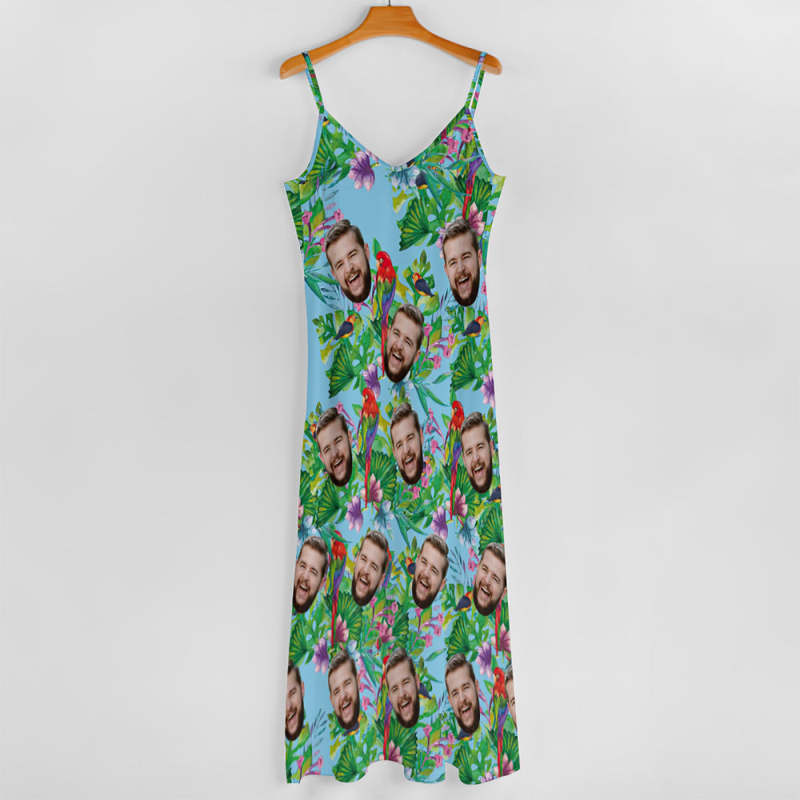 Custom Face Sling Hawaiian Style Long Dress Colorful Parrot