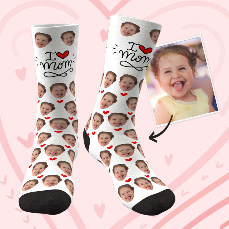 Mother's Day Gift - Custom Face Socks Heart I Love Mom Best Gifts For Mom - MyPhotoBoxer Mother's Day Gift - Custom Face Socks Heart I Love Mom Best Gifts For Mom - MyPhotoBoxer