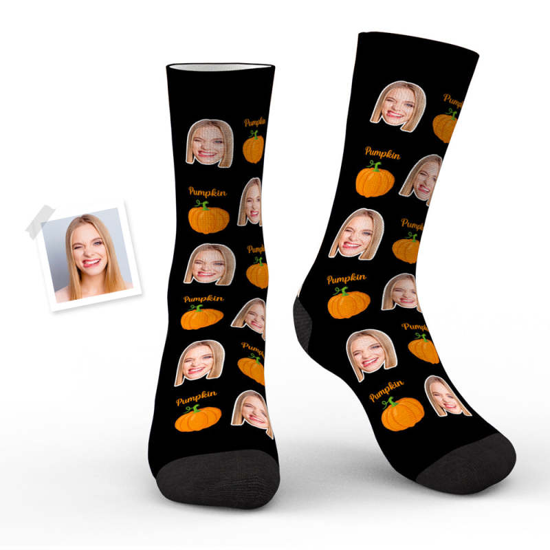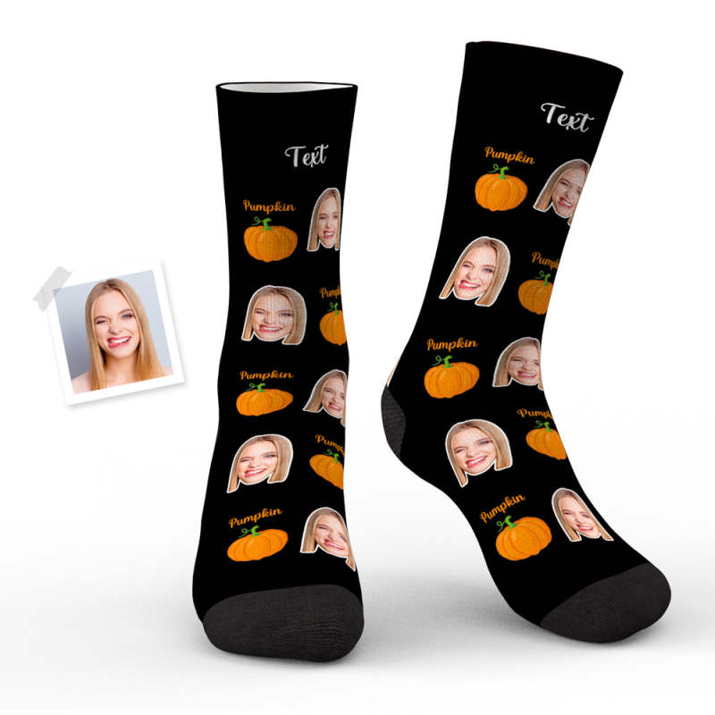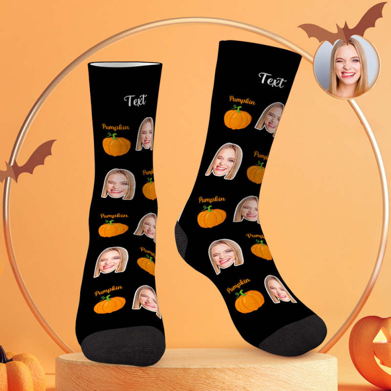 Custom Face Socks Personalized Photo Halloween Black Socks Pumpkin