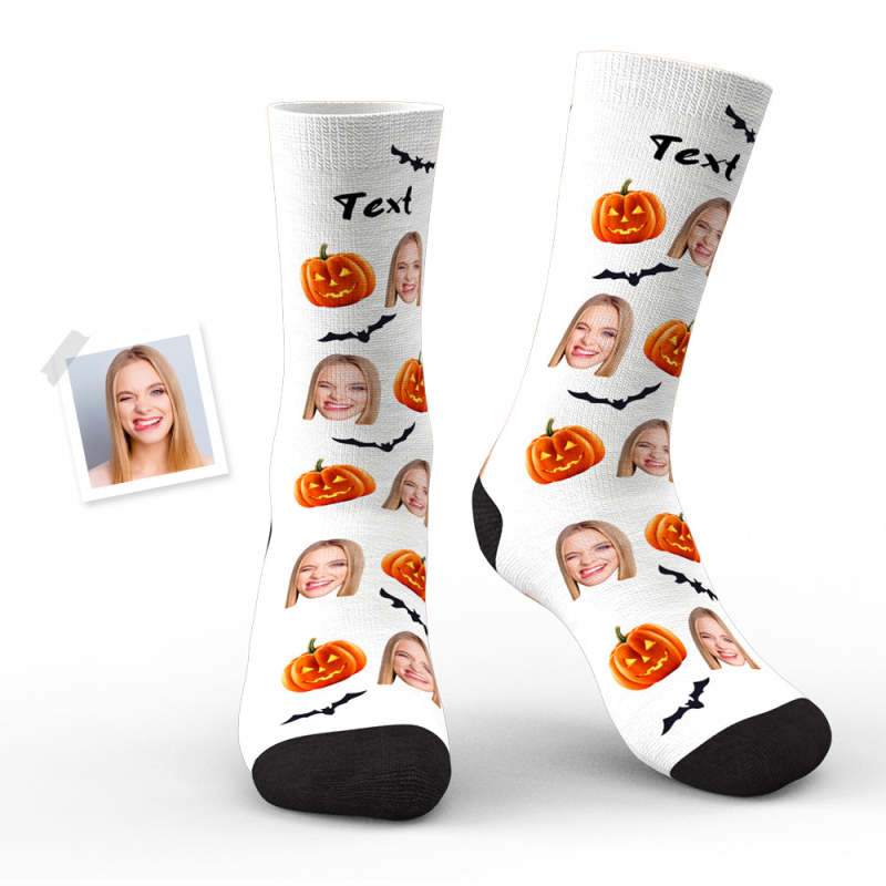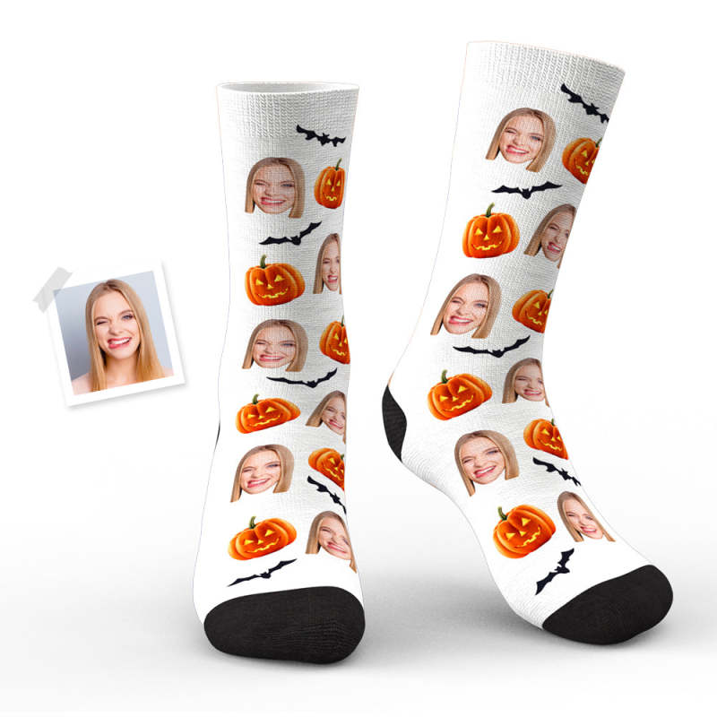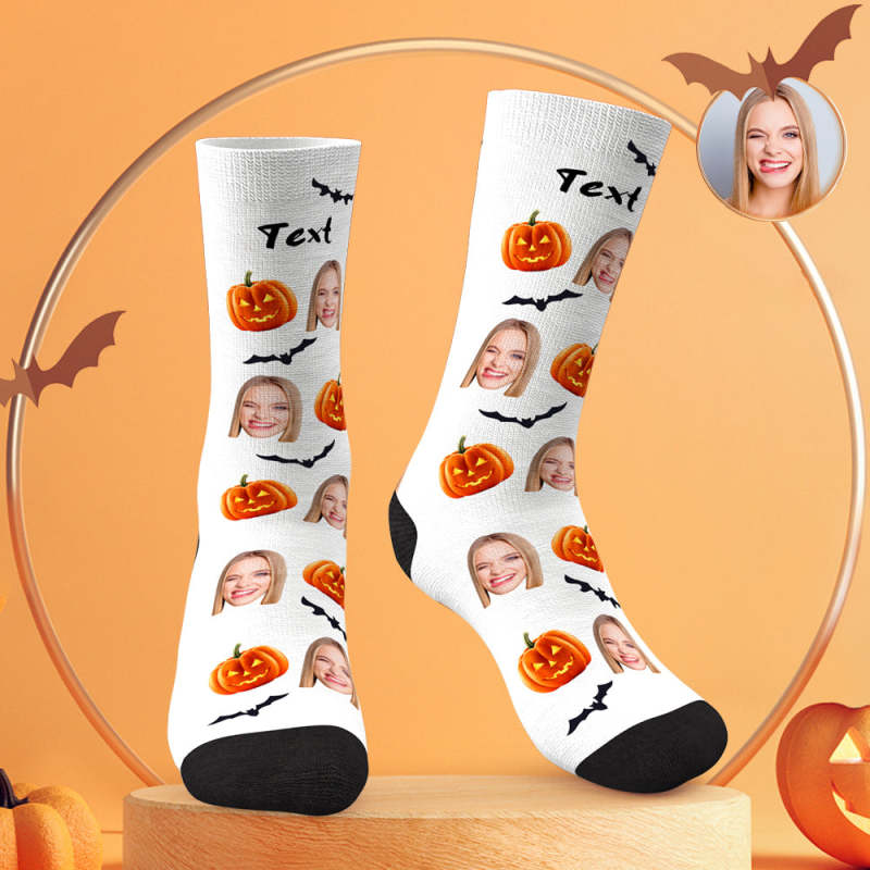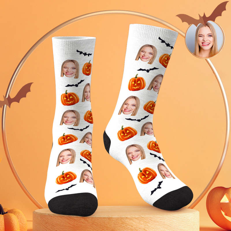 Custom Face Socks Personalized Photo Halloween White Socks Pumpkin Bat