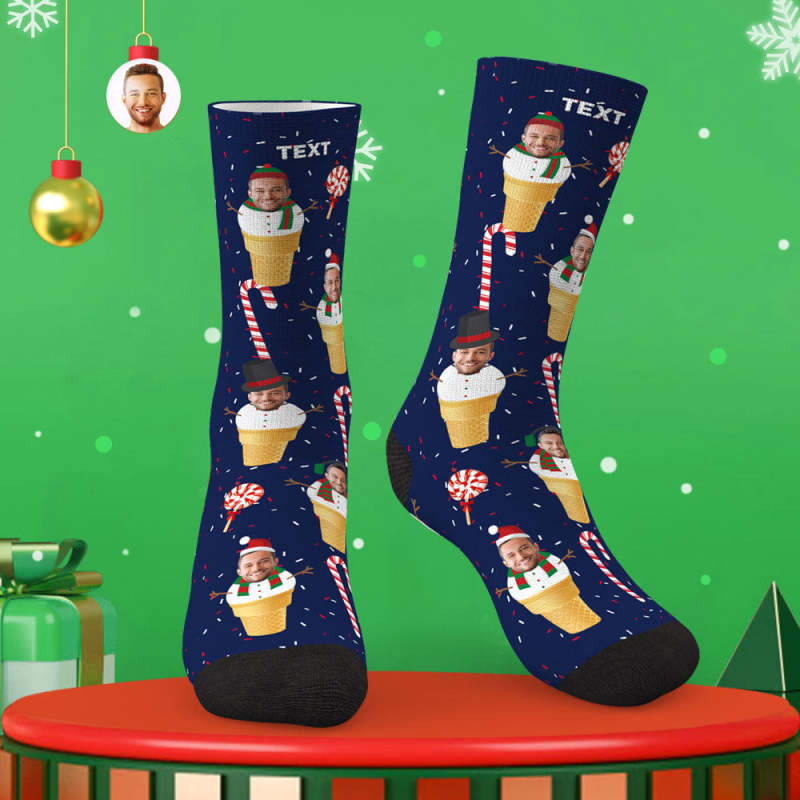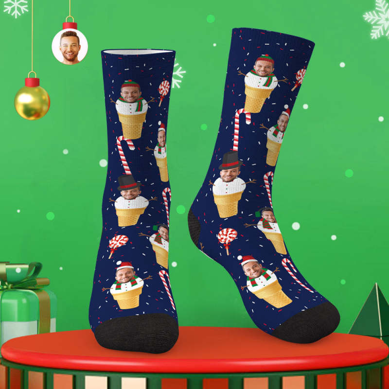 Custom Face Socks Personalized Photo Socks Christmas Gift - Snowman Cone