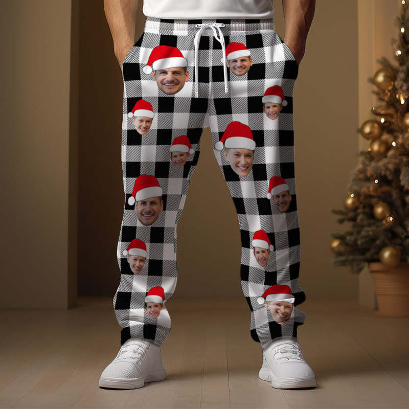 Custom Face Sweatpants Personalized Photo Christmas Family Buffalo Plaid Golf Pants for Him