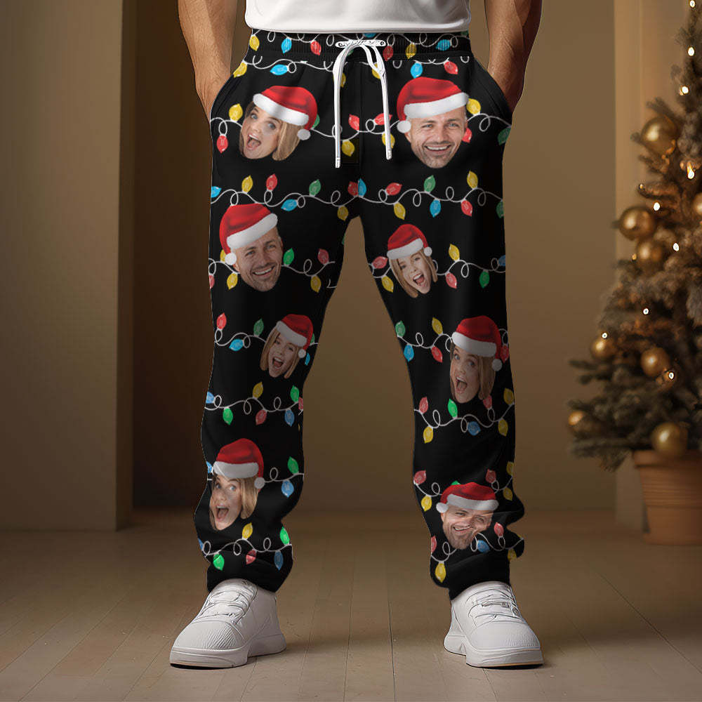 Custom Face Sweatpants Personalized Photo Christmas Family Xmas Leds Golf Pants for Him