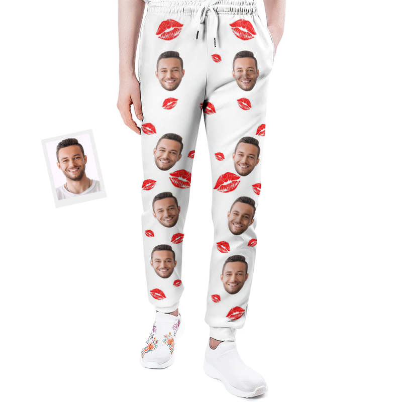 Custom Face Sweatpants Unisex Personalized Closed Bottom Casual Sweatpants Red Lips