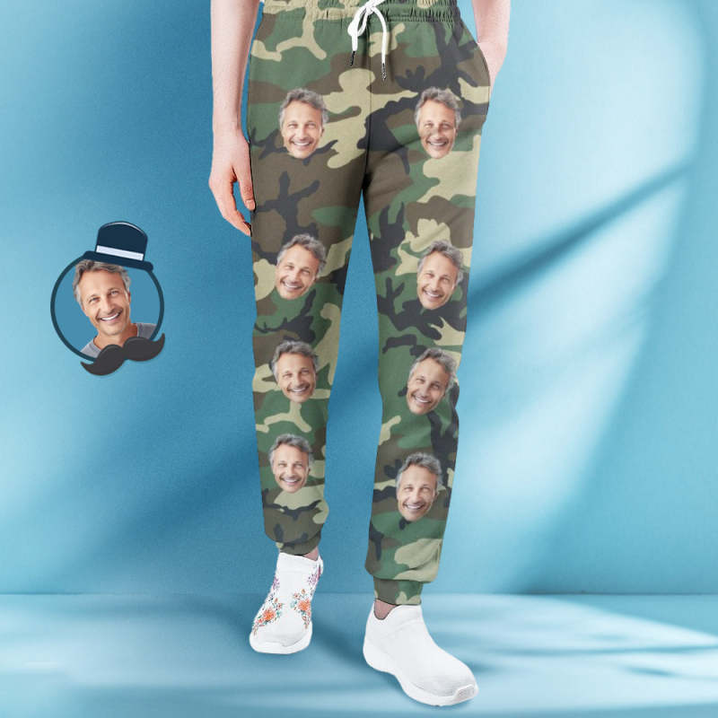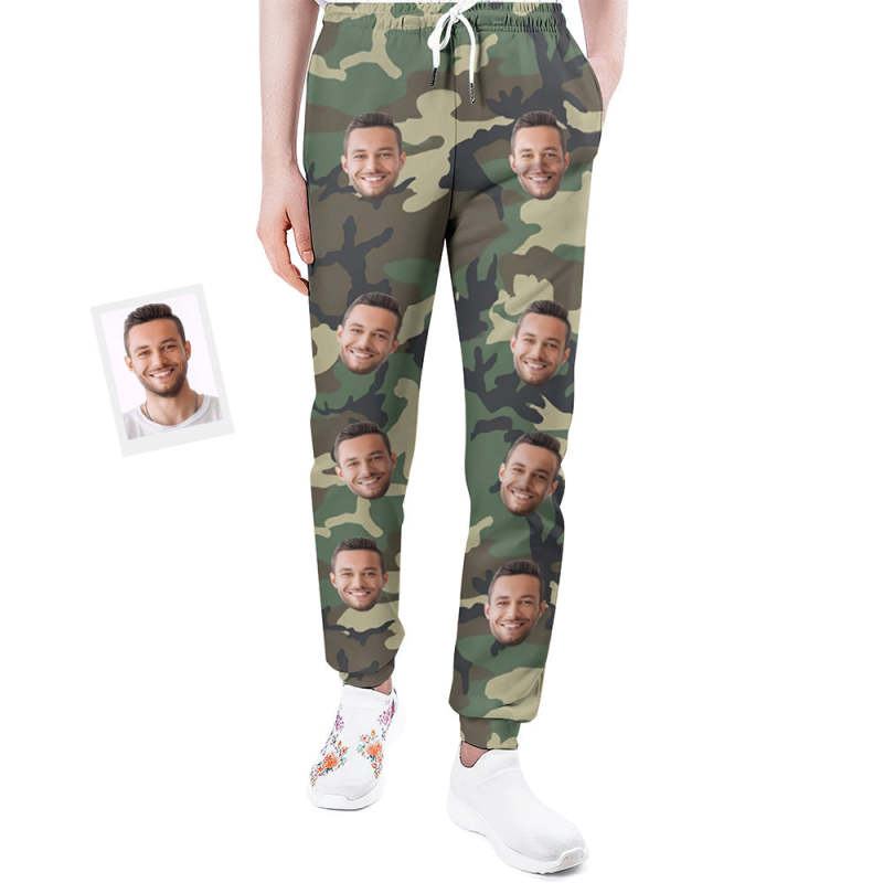 Custom Face Sweatpants Unisex Personalized Closed Bottom Joggers Camouflage Green