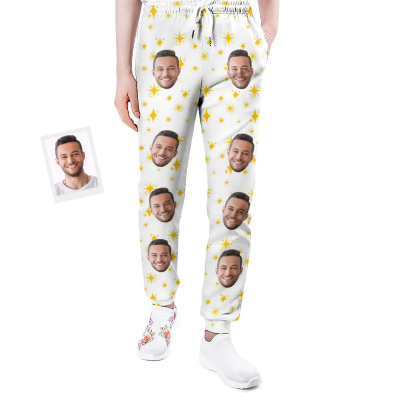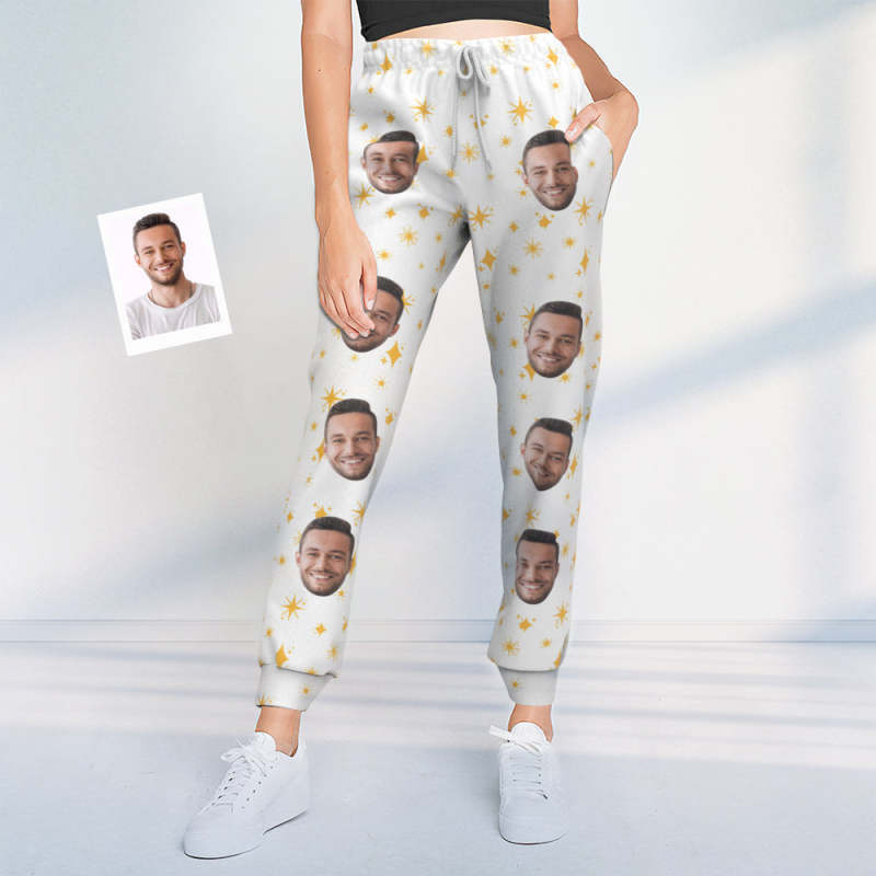 Custom Face Sweatpants Unisex Personalized Closed Bottom Joggers Stars