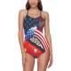 Custom Face Swimwear Women's Photo Slip One Piece Swimsuit- USA Flag With Lips