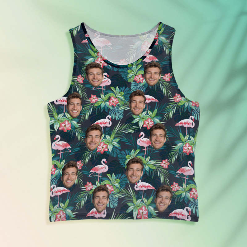 Custom Face Tank Tops Men's Sleeveless Shirt Leaves & Flamingo