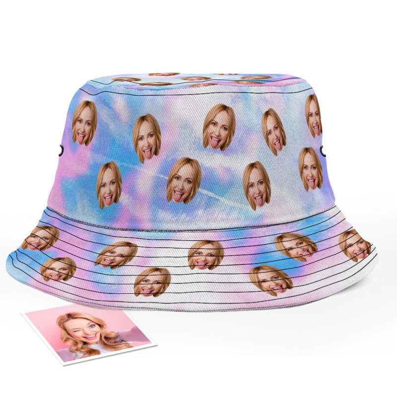 Custom Face Tie-Dye Bucket Hat Unisex Photo Personalize Summer Cap Hiking Beach Pink Sports Hats Gift for Lover