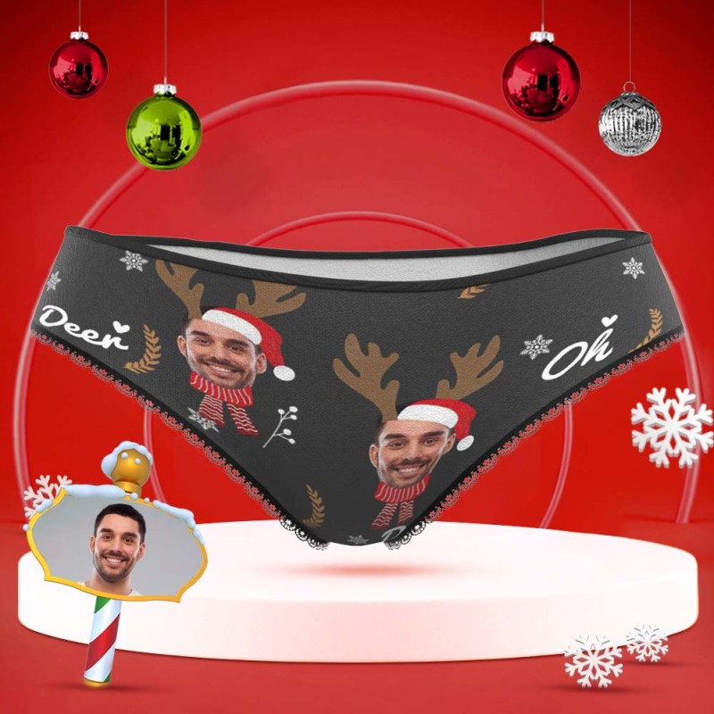 Custom Face Underwear Personalized Women Panties With Photo Christmas Reindeer