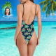 Custom Face V-Neck Bikini Women's Photo One Piece Swimsuit Women's Gifts - Leaves
