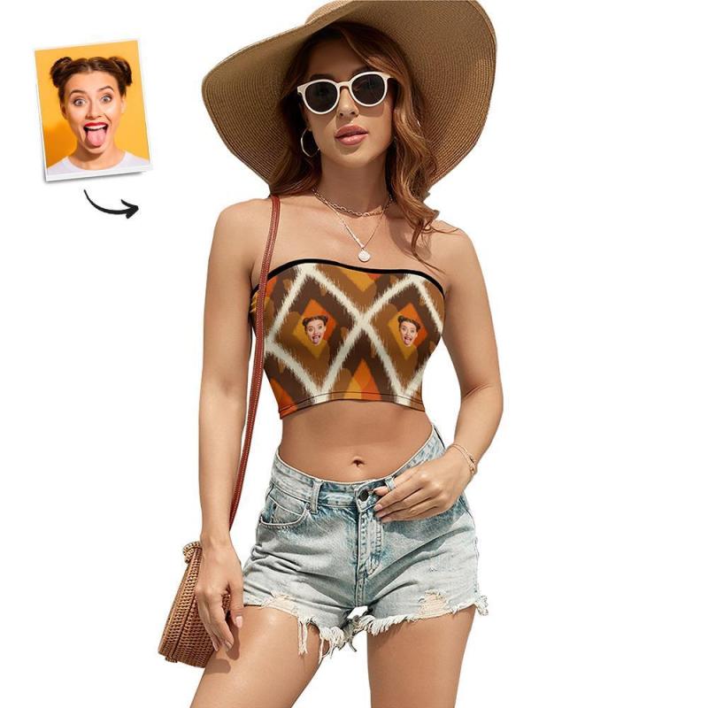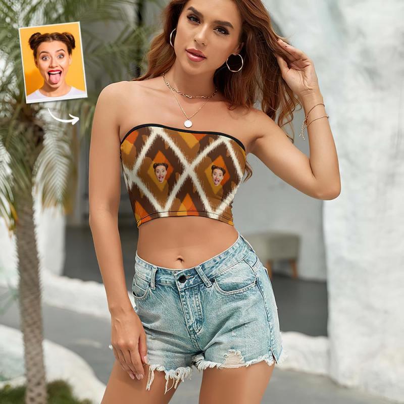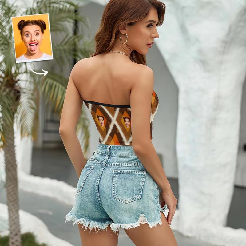 Custom Face Women's Bandeau Top Fashion Brown Strapless Bra Sexy Tube Top For Beach Party