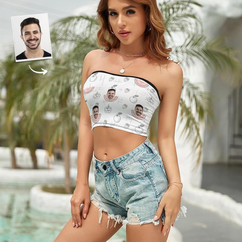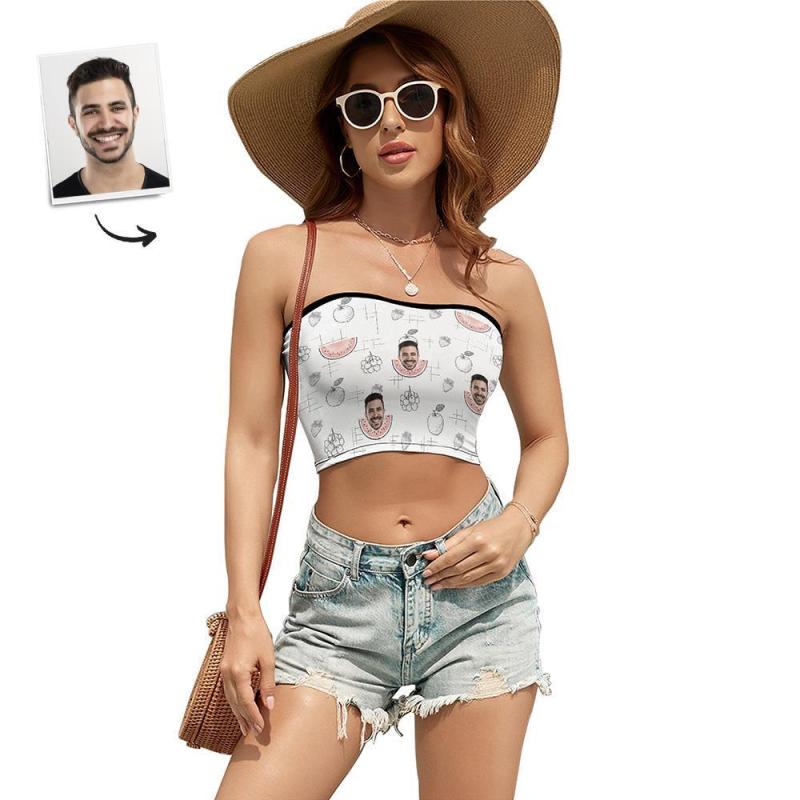 Custom Face Women's Bandeau Top Summer Style Strapless Bra Sexy Tube Top For Beach Party