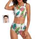 Custom Face Women's Leaves Two-piece Swimsuit Personalized Gifts for Her