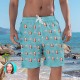 Custom Head Photo and Flamingo Blue Men's Beach Trunks