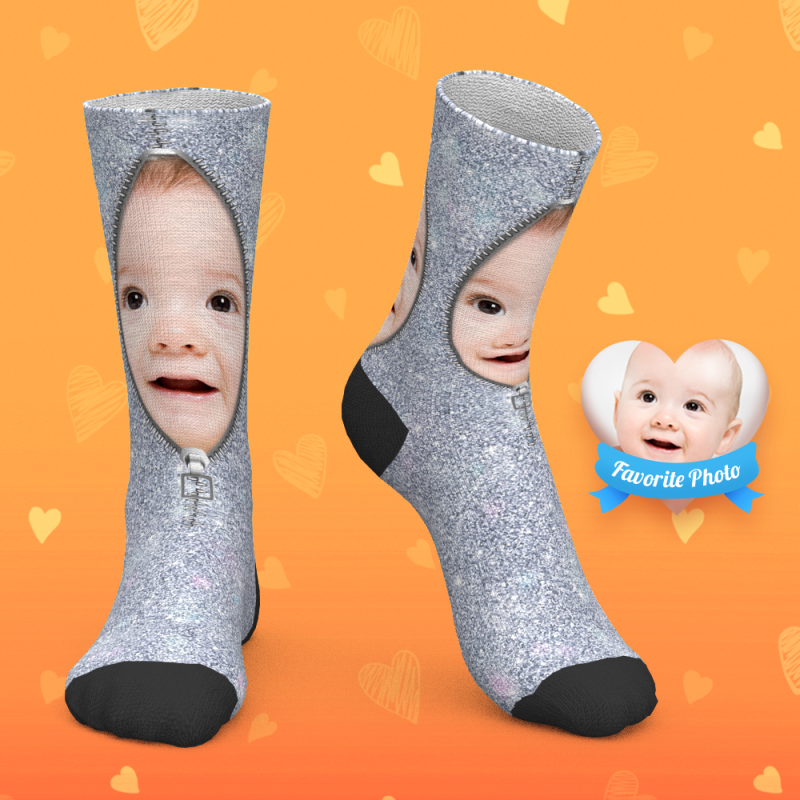 Custom Socks Personalized Face Socks Shiny Zipper - MyPhotoBoxer Custom Socks Personalized Face Socks Shiny Zipper - MyPhotoBoxer