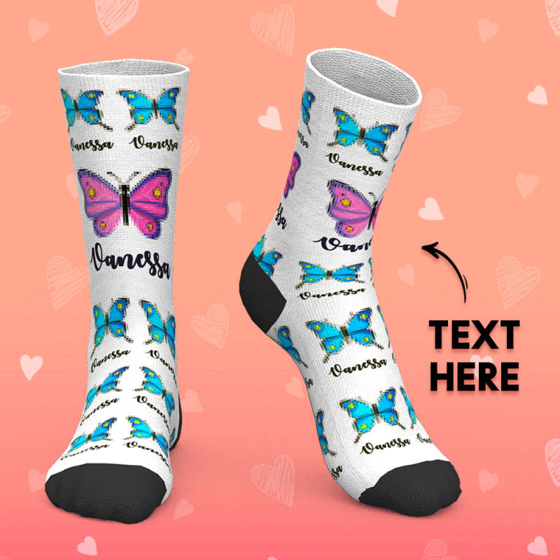 Custom Socks with Text Personalized Name Socks Gift - Colorful Butterfly - MyPhotoBoxer Custom Socks with Text Personalized Name Socks Gift - Colorful Butterfly - MyPhotoBoxer