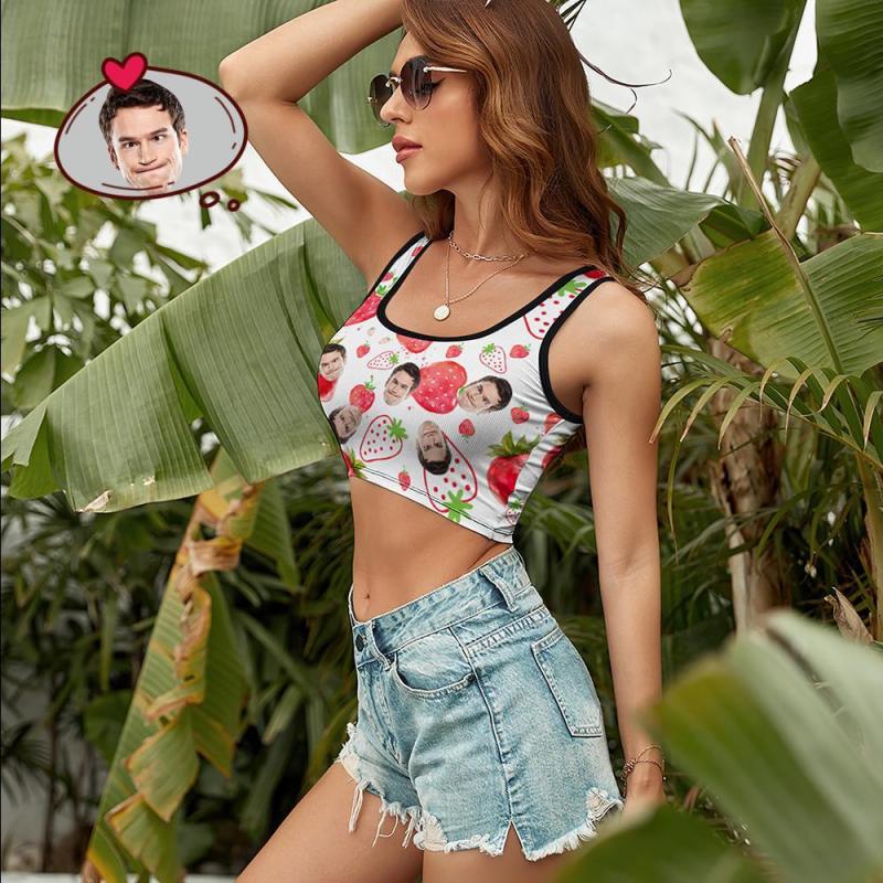 Custom Women's Photo Short Vest Personalised Face Tank Top Crop Top - Strawberry