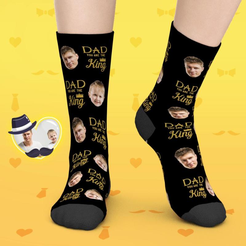 Gifts for Dad, Custom Face Socks Add Pictures And Name - Dad You Are The King