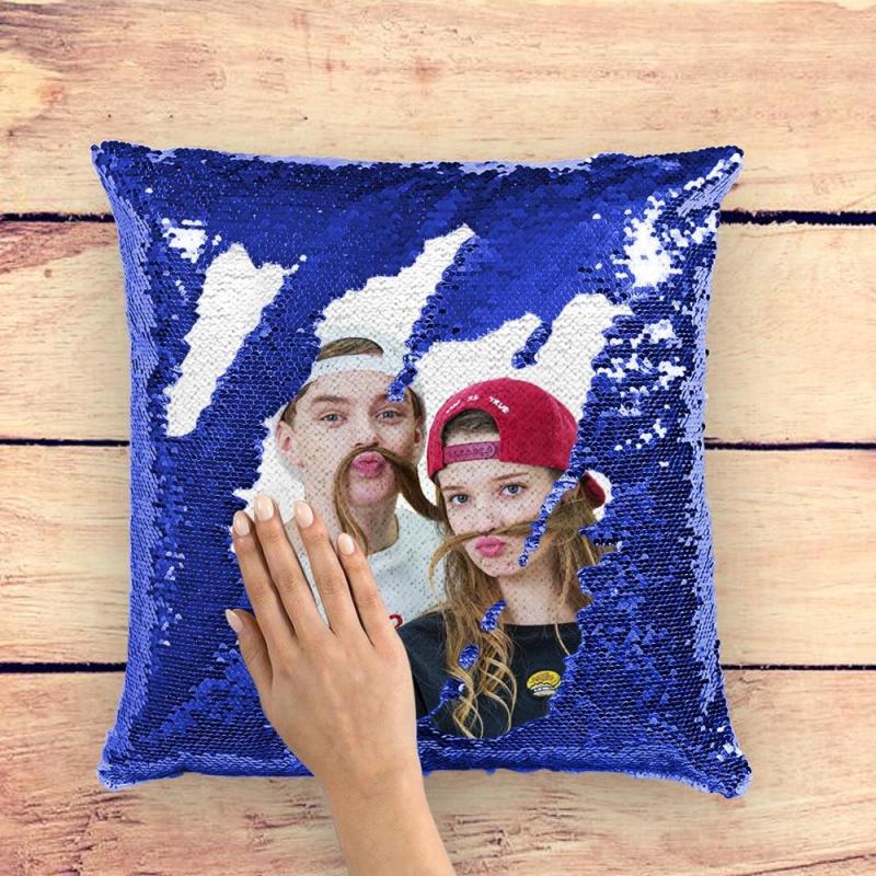 Magic Sequins Pillow - Custom Your Photo - Blue - 15.75in x15.75in