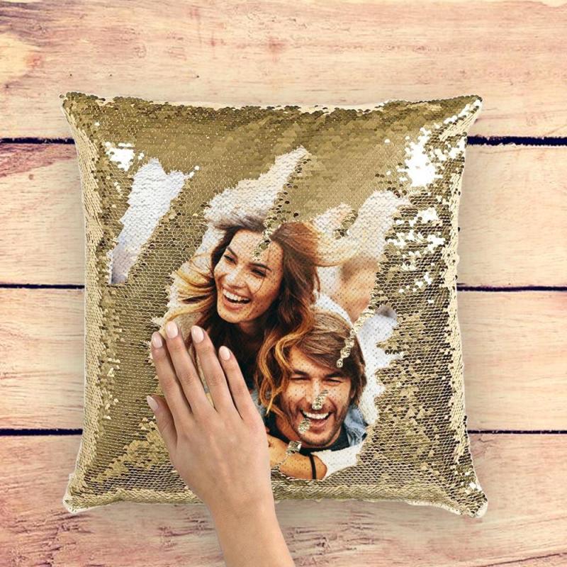 Magic Sequins Pillow - Custom Your Photo - Golden - 15.75in x15.75in
