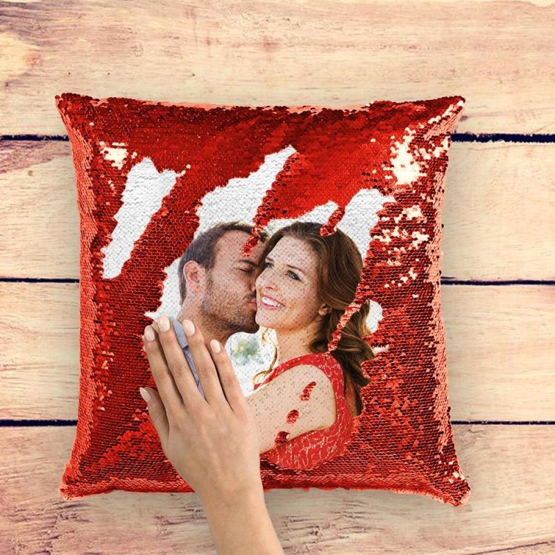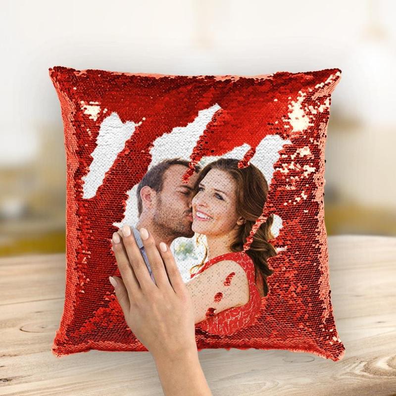• Personalized photo pillow with magic sequins