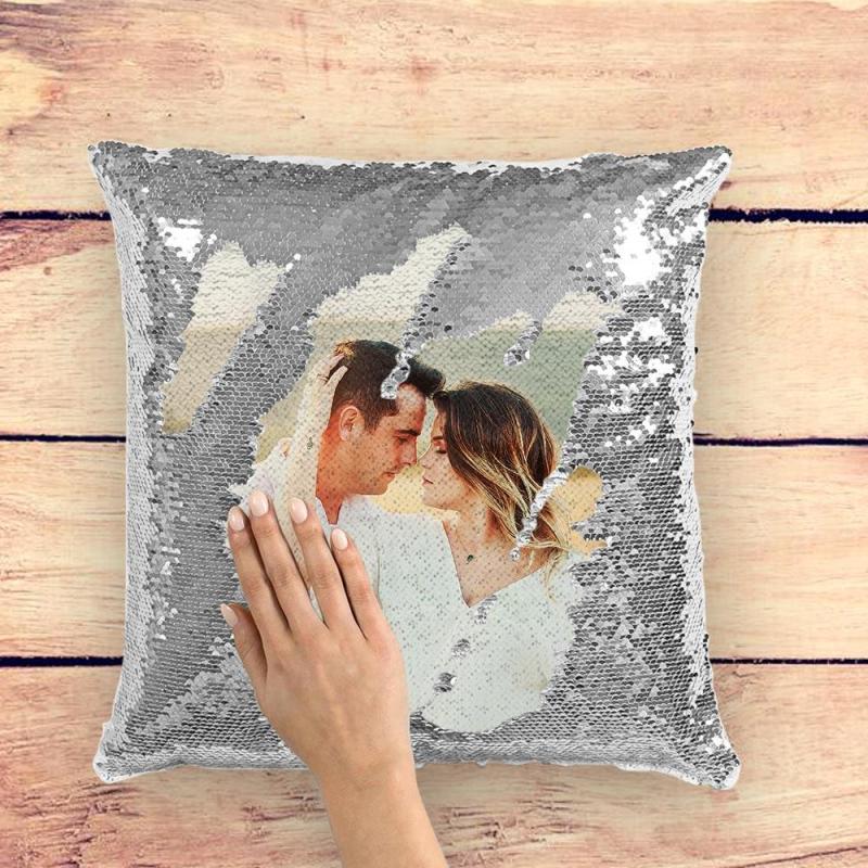Personalized photo pillow with magic sequins
