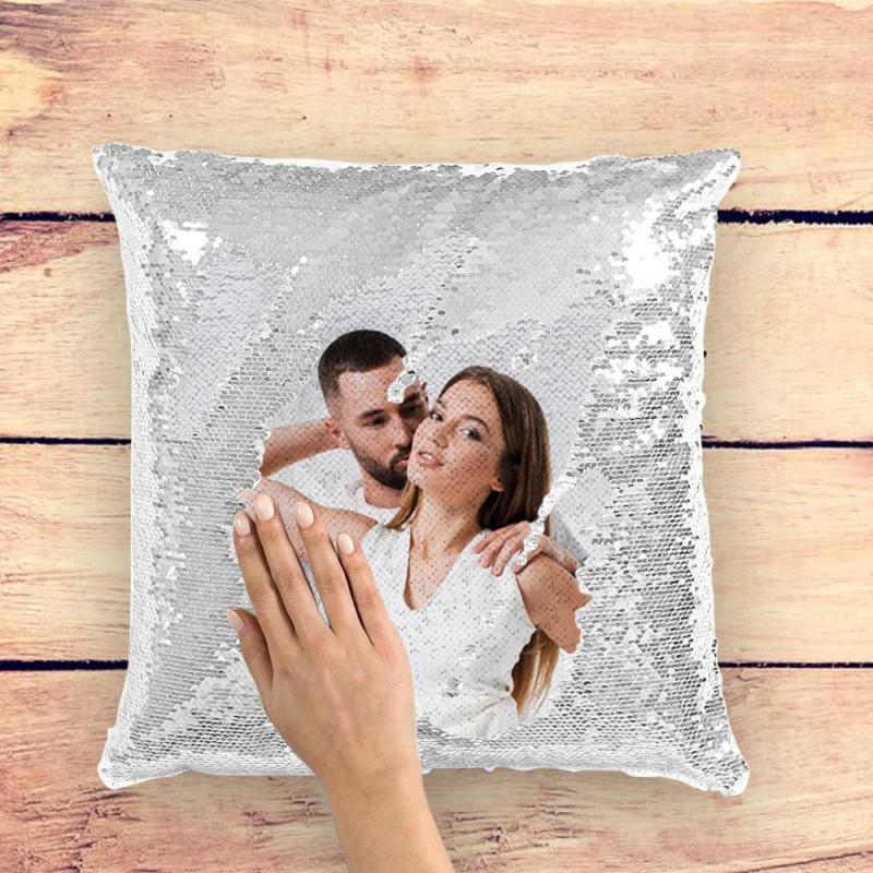 Personalized photo pillow with magic sequins
